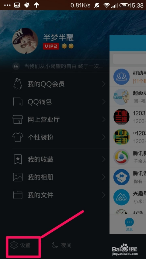 4、進入QQ設(shè)置菜單:在設(shè)置頁面,你會看到各種選項。
