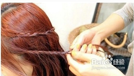 1、編好發(fā)型后,可以使用發(fā)膠固定一下,增加發(fā)型的持久度。