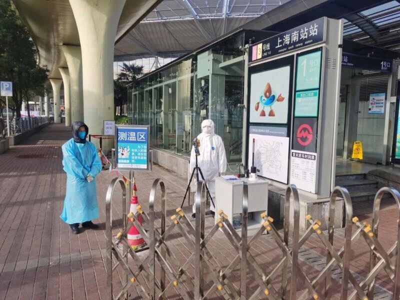 在車站進出口設(shè)立測溫點,對進出站旅客進行體溫檢測,對發(fā)熱、咳嗽等癥狀的旅客進行登記,并引導(dǎo)至臨時隔離區(qū),嚴(yán)格按照相關(guān)流程進行處理。